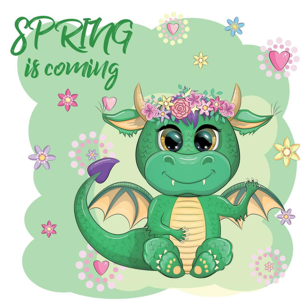 Source : www.vecteezy.comPremium Vector | Cute cartoon green baby dragon with horns and